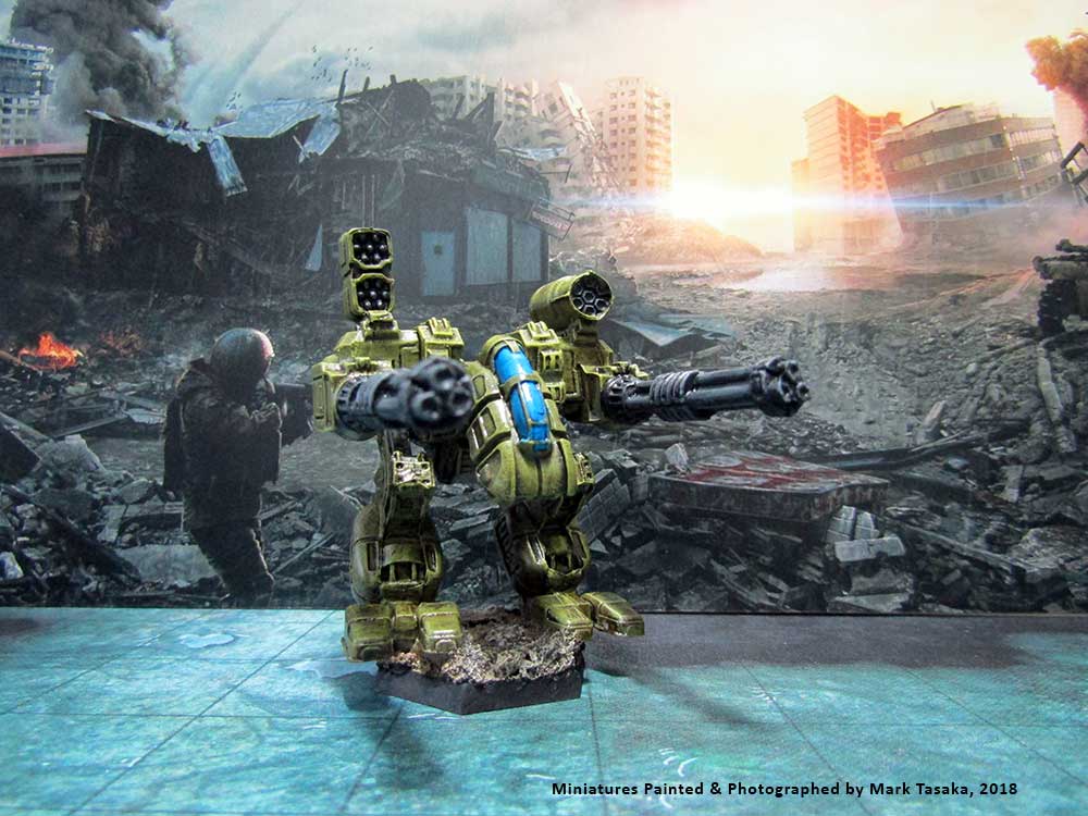deadeye walker glued onto a gaming base, Reaper miniatures.