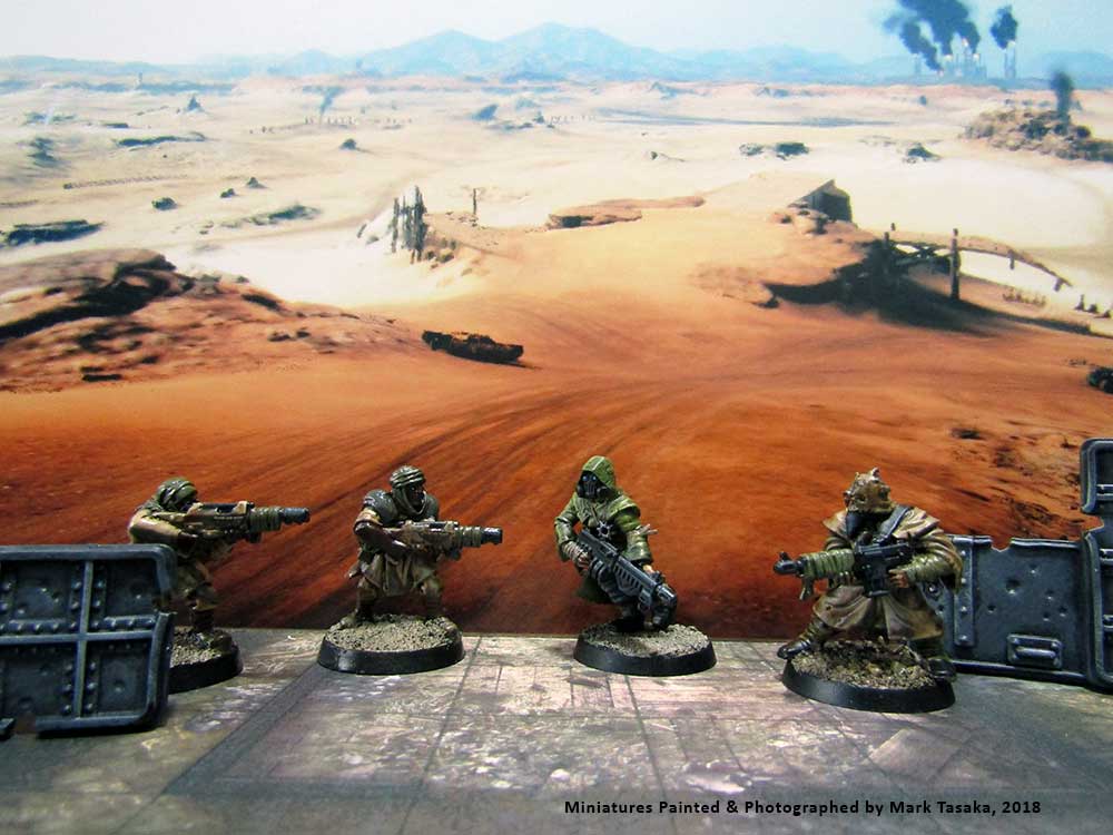 In part 1 of this series, I assembled a 10-man squad of Tallarn Desert Raiders; in part 2, I assembled and painted a Tallarn Heavy Bolter team. In parts 3, 4 and 5, I will be painting the
