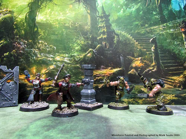 painted four Imperial Guard Commissars; one of the miniatures is a metal Games